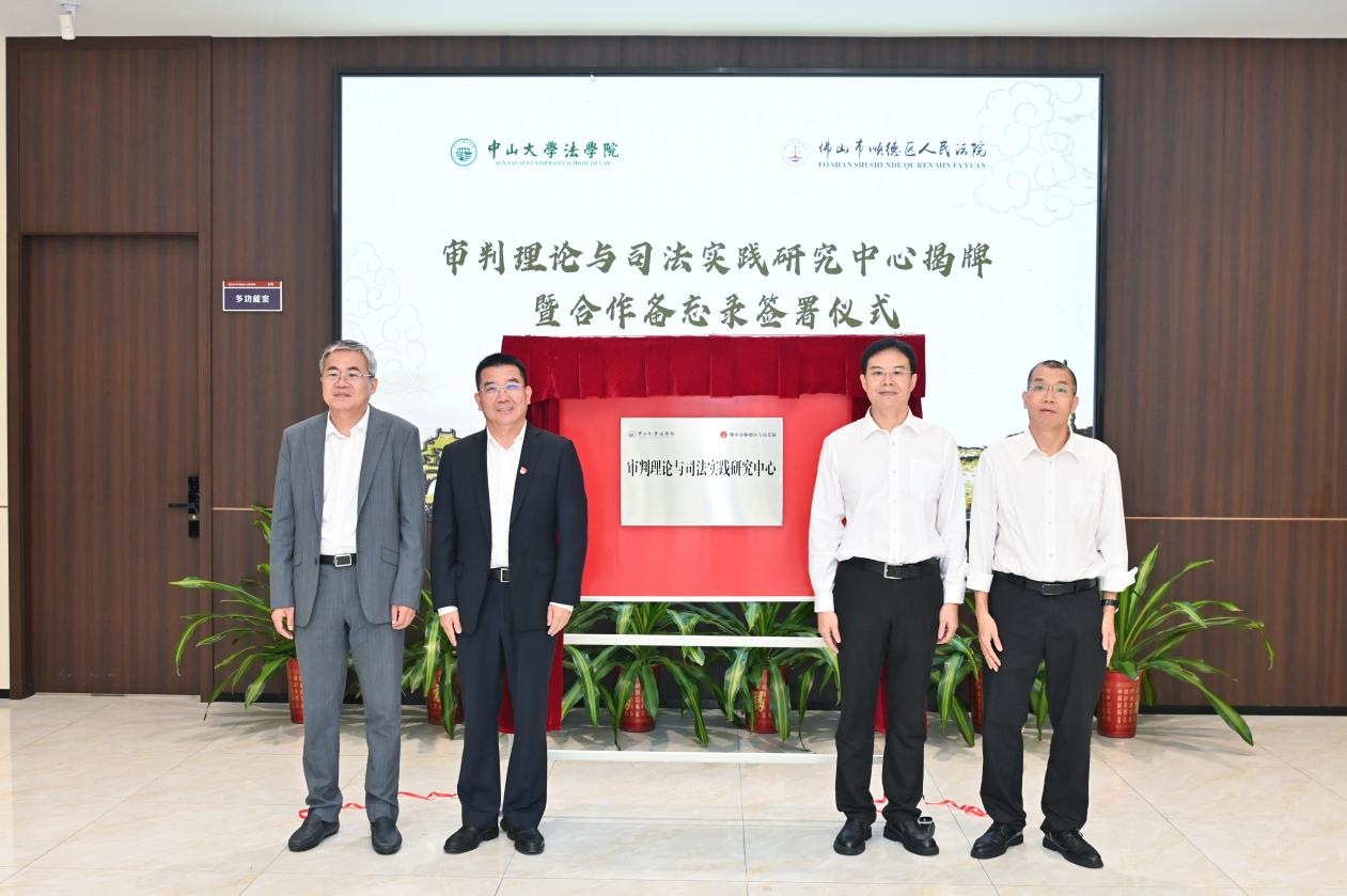 为深化新时代院校合作,打造院校合作典范,进一步促进学院与实务部门合作,加强学术与审判一线的交流,10月22日,直播做爱 与顺德法院共同举行审判理论与司法实践研究中心揭牌暨合作备忘录签署仪式。直播做爱 党委书记梅成达、院长张亮、党委副书记侯雪莹,顺德法院党组书记、院长郭文东,党组成员、副院长周子昌等出席揭牌仪式。