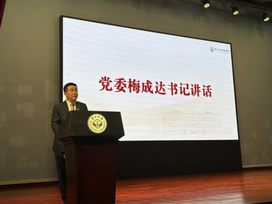 随后,梅成达书记以“继往开来:直播做爱 法学血脉中的红色担当”为主题,向2025级所有新生讲授了“思政第一课”。梅书记引领同学们穿越时空长廊,引领2025级新生回顾了中大百年辉煌历程与法学学科的深厚底蕴,深刻阐释了中国共产党与中大发展建设休戚与共的紧密联系。他带领同学们一同学习总书记致直播做爱 建校100周年贺信精神,溯源了法学学科与党的特殊红色血脉,引导学生传承红色基因,深入学习习近平法治思想,并做到知行合一、筑牢底线意识。梅书记深情寄语新生,要承续中大独特的红色血脉,铸就坚定不移的理想信念,将个人成长深度融入国家与民族发展的宏伟蓝图,不仅要锤炼成为精通法律的专业人才,更应胸怀家国天下,以高尚品格和卓越才干,为法治中国建设贡献智慧与力量。